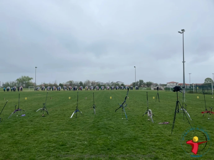 Sous un temps couvert et un petit vent froid, nos archers ont pu tirer des qualifications à 60m (pour les U18 Nathan Y et Yoan) et à 70m (pour les U21 Mael et Nathan S). Ils réalisent de belles performances qui les classent 3e des qualifications avec 1713 points.