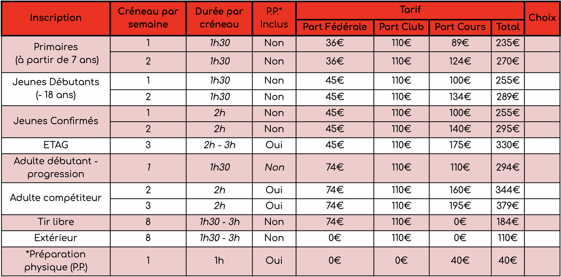 - Des cours Adultes Débutants qui durent 1h30 et permettent à tous de découvrir notre sport.